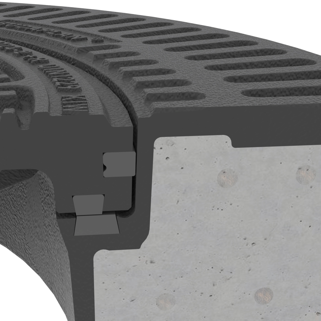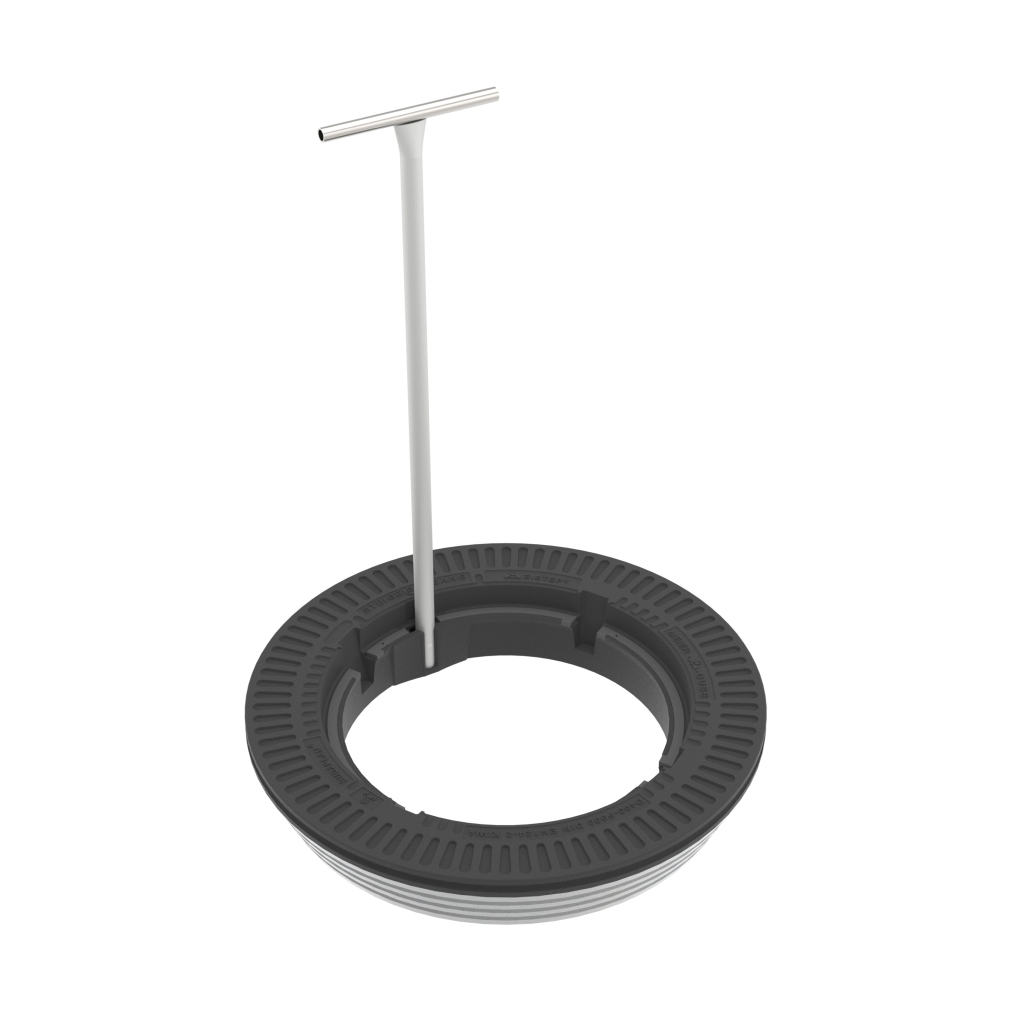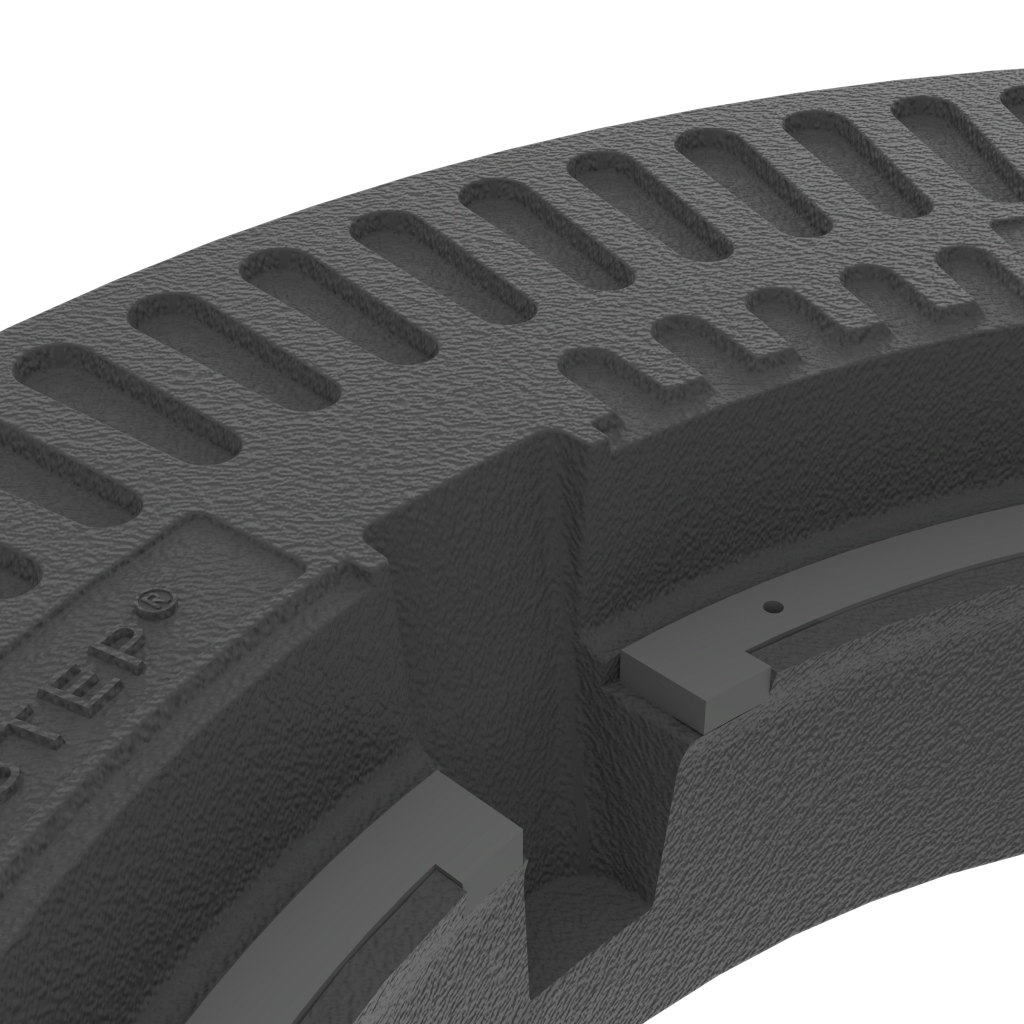 Beton-Guss-Deckel, rund, ohne Ventilation, mit austauschbarer dämpfender Einlage MEIPREN, mit seitlicher Einlage MEISILENCE im Deckel zur horizontalen Dämpfung des Deckels im Rahmen
