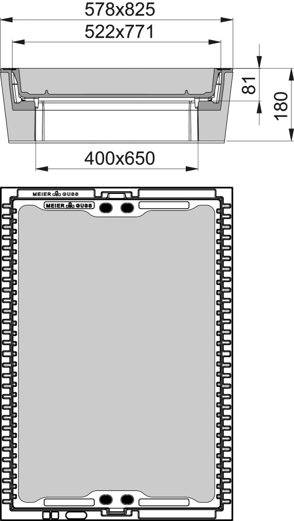 Beton-Guss-Rahmen, Kennmaß 650x400mm, Rahmenhöhe 180mm