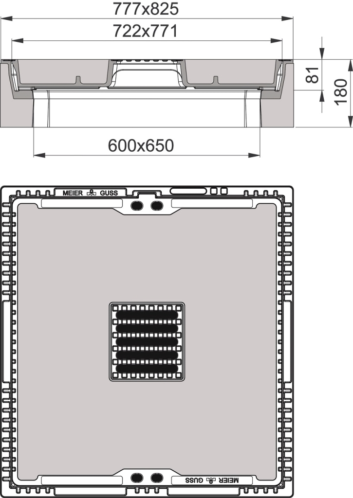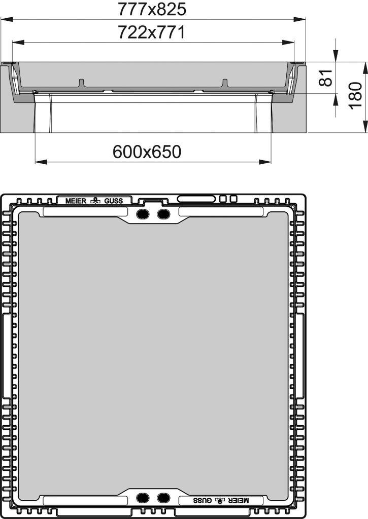 Beton-Guss-Rahmen, Kennmaß 650x600mm, Rahmenhöhe 180mm