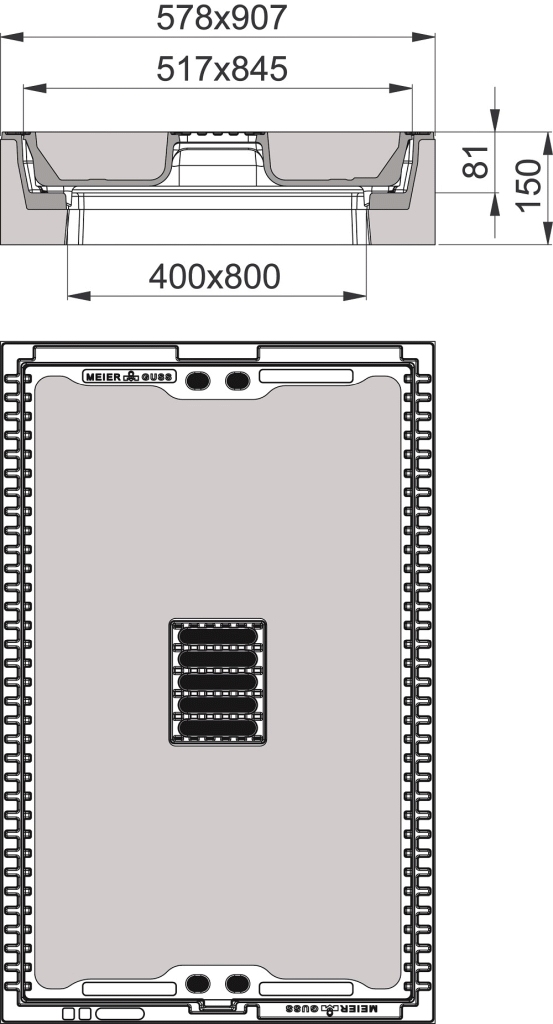 Beton-Guss-Rahmen, Kennmaß 800x400mm, Rahmenhöhe 150mm